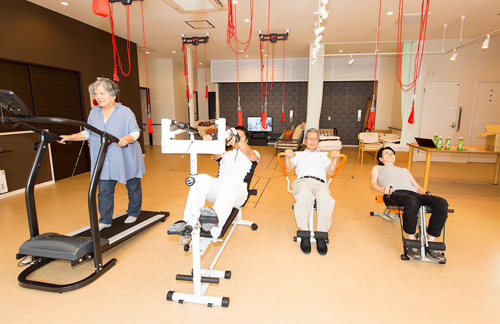 マット運動やトレーニング機能を用いて筋力向上。その方に応じて負荷を調整しながら無理なく身体を動かします。